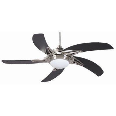 52STG5EST Features: -52'' Ceiling fan.-Remote control: Optional.-Motor Size: 172 x 16mm.-Contemporary style.-Glass shade.-Blade count: 5.-Blade Pitch: 13 degree.-Dry Location.-UL Listed. Includes: -Light Kit: Included. Color/Finish: -Stainless Steel finish.-Black blade finish. Specifications: -Accomodates: (1) 100W E-11 Halogen bulb. Dimensions: -Overall Fan Height: 16'' H.-Overall Dimensions: 16'' H x 52'' W x 16'' D.