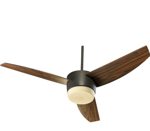 The Trimark ceiling fan makes an immediate impression with simple, angular, modern styling. The housing is richly finished in oiled bronze and matched with walnut blades. Integrated light kit for handy downlighting. Accent your home with this sophisticated fan design from Quorum. (MAP)
