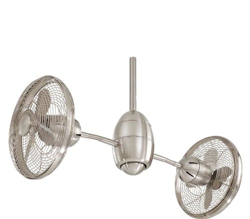 Uniquely designed, the Gyrette™ gently rotates 360 degrees at 3 RPMs. The flexible arms let you adjust the individual fan heads to maximize air circulation throughout the room. High performance twin turbofan heads are adjustable for up and down movement. Another distinctive design from Minka Aire. Brushed nickel finish with brushed nickel finish blades and cages. (UM)