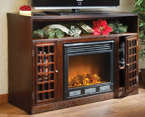 Narita Media Console Electric Fireplace! SAVE BIG! Support your set with this warm Winter wonder! Colder weather is here. Are you feeling the chill? Send it packing with the Narita Media Console Fireplace! You won't have to split logs, haul timber or wrestle with a flue. This neat heater plugs in anywhere to spread warmth, but you still get all the living-space-enhancing ambience and old-school style of a standard wood-burning stove. Plus, it's the perfect platform for that snazzy new set and all the add-ons! Watchable warmth: Realistic flickering flame effect; Mantel supports up to 85 lbs., 50" TV; Cord management built in for TVs, DVD players, video games and more; 1,500W of distributed heat through a blower; No piping or venting required; Safety thermal overload protector; Easy, adjustable thermostat and light level; Energy efficient. Heats a 14 x 14' room with about the same energy as a coffee maker; Side cabinets offer extra storage; Included remote control requires 2 AAA batteries (sorry, not included); Housing remains cool to the touch during operation; 48 x 16 1/4 x 32 1/2"h., 128 lbs. State Finish. Don't miss this hot deal! Order Now! Narita Media Console Electric Fireplace with Remote