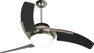 This 54" Juna ceiling fan features a modern geometry with swept wing blades in a gorgeous polished nickel finish. It comes in a polished nickel finish motor with three black blades and integrated white opal glass light kit. This fan features a 54" blade span and 14 degree blade pitch. Remote control and one 2" and one 6" downrod are included. (IMAP)